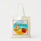 Tote Bag mostrada na natureza com um impressão de férias de praia fofo. Personalize este saco ou comprar como está.