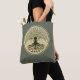 Este é um saco de tote de qualidade simples, mas surpreendentemente bonito. Em cores naturais de tons de azul, creme mole e marrom, esta árvore de Banyan com suas raízes é perfeitamente equilibrada e centrada no logotipo circular. A árvore Banyan também é chamada de 'Árvore do Vivo', e tem um profundo significado espiritual no budismo e em outras religiões orientais. Você poderia usar esta bolsa para o Dia da Terra, ou dar como presente a qualquer um que esteja preocupado com questões ambientais. Sacos reutilizáveis são perfeitos! E a design desta bolsa não poderia ser melhor.