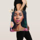 Este item apresenta um retrato de pintura acrílico de uma linda menina negra com cabelo preto e verde encaracolado e olhos verde-aveludados segurando um pirulito. A beleza de pele castanha está vestindo uma camisa roxa e rosa, divertida, e batom rosa. Um trabalho de arte de doce vibrante e colorido!