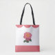 Linda bolsa tote com flor de rosa em fundo branco com combinação de cor rosa coral.