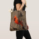 Pássaro vermelho incrível nos ramos de um morto ou árvore de queda com folhas marrons. O fundo faz o vermelho vivo das penas das aves se destacar e pop.