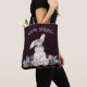Esta bolsa de tote adorável apresenta um belo coelho branco de aquarela sentado entre flores silvestres. Diz Primavera Feliz no topo e o design é colocado contra um fundo preto que o torna realmente pop. O reverso do travesseiro é um adorável padrão floral azul, lavanda e cor-de-rosa contra um fundo preto.