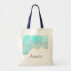 Um saco de tote com um design de verão vibrante. Turquesa / aqua imagem aqua verde aquosa com uma borda de ouro ondulada. Elegante e adorável.