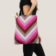 A imagem apresenta um padrão cevron impressionante formado por faixas coloridas e em negrito apontando para baixo em forma "V". Essas listras se repetem de forma rítmica e se alternam entre cores ricas e vibrantes: marrom, magenta, laranja, amarelo e verde-oliva. O efeito visual geral é tanto retrô quanto energético, evocando uma estética lúdica, porém estruturada, que lembra as tendências design dos anos 70.