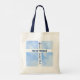 Esta bolsa apresenta uma cruz com uma mensagem e um verso Bíblia juntamente com uma fotografia do fundo do céu. O verso de mensagens e Bíblias é personalizável.