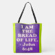 EU SOU O PÃO DA VIDA. - John 6:48. Do comentário sobre Bíblia Jamieson-Fausset-Brown: 48. Eu sou o pão da vida... "Como aquele que acredita em mim tem uma vida eterna, então eu sou a eterna sustentação dessa vida." (Repeticionado em 06:35). Peça a sua cópia da bolsa de ombro com este verso de Bíblia nela hoje!
