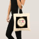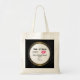 Uma bolsa personalizada de tote de casamento com um design de casamento estilo moderno - lábios de kissy cor-de-rosa glamourosos e uma ilustração masculina de bigode retrô. Colocado sobre um fundo de quadro negro com um quadro circular de gradiente dourado no centro. O texto diz que o Sr. e a Sra. podem personalizar com seus nomes e data de casamento.
