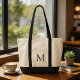 This is a black monogram modern trendy typography tote bag. Customise your text to make this design more unique.