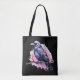 Um saco de tote com a imagem de um corvo preto com asas roxas cor-de-rosa. Uma água cor-de-rosa por trás deste adorável pássaro místico.