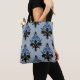 Classic Damask style design in blue and black on a light blue background tote statement bag.