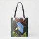 Rain or shine, brighten any day's errands with this tote bag featuring a tiny, living umbrella of spectacular blue-sky petals against a backdrop of autumn leaves and grey clouds. Use it to carry anything from groceries or garden supplies, to a quick change of clothes for the gym or your latest treasures from the local nursery or flower shop. This versatile tote also makes a beautiful gift for anyone in your life who loves flowers!