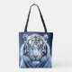 Tiger themed tote bag. Cool ai art depicting a white tiger with ice blue eyes. A really majestic look tiger for those whole like big cats.