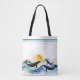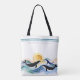 Adicione o tema marinho baleeiro para viver o seu dia a dia com nossa colorida Blue Marine Happy Whales & Waves Custom Tote Bag com três baleias brincalhonas a piscar num mar sereno sob um sol ouro. O design é capturado em tons de azul, lacre, amarelo, ouro, rosa e roxo. Todo texto pode ser atualizado para criar acessório de compra personalizado.