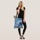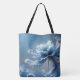 Uma flor fantástica floresce com pétalas intricadas e giratórias em tons de azul e branco, criando um efeito etéreo e sonhador