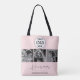 Blush Pink Photo Black Script Hair Stylist Tote Bag. A sophisticated business design with photo uploads. Clean and classic, chic black script on blush pink background, expressing a stylist specializing in timeless beauty. Add all your details and your best photos to represent your brand. Contact the designer for any customization questions. A lovely tote promotional item your customers will enjoy!