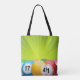 Um design que comemore o jogo do bingo com algumas bolas do bingo em um fundo verde. Este design olha realmente eficaz nesta sacola