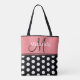 Bolsa Tote Bolinhas brancas cor-de-rosa pretas com script mon