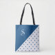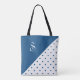 Bolsa Tote Bolinhas Branco Azul Monograma Geométrico