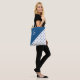 O padrão geométrico em negrito apresenta um triângulo azul no canto superior esquerdo com um monograma de script personalizado branco e bolinhas azuis em branco no canto inferior direito. Personalize-o com a sua inicial na barra lateral. Para ver o design em outros itens, clique no link de coleta "Artes Rocklawn". Copyright ©Claire E. Skinner. Todos os direitos reservados.