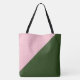 O bolsa personalizado com um design de bloco na moda da cor, um verde contínuo, e um rosa com minúsculo quando bolinhas. Personalize com seu nome baseado num guião ao longo da diagonal na parte dianteira.