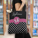 Bolsa Tote Bolinhas de Monograma Preto-Rosa