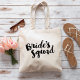 Sacos de tote de noiva personalizados com o gráfico "Esquadrão da Noiva" em um script de pincel de na moda. Personalize-o com sua data de casamento, hashtag de casamento, nomes ou outro texto personalizado. Presente perfeito para noiva, dama de honra e festa de casamento!