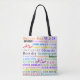 Esta mochila de tendências e elevações apresenta a frase "Bom dia" em vários idiomas, organizada em um layout na moda e artístico. Perfeito para o carregando essencial do dia a dia com uma vibração positiva!