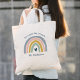 O Professor Gift Boho Rainbow Tote Bag apresenta um adorável duo de arco-íris em tons de rosa, azul, mostarda e verde, junto com o tipo divertido.