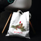 Espalhe a alegria de Natal nesta época festiva, uma boneca está sentada entre um cone e plantas de pinheiro verde, com a frase Feliz ano novo em sacos de tote festivos vermelhos para rechear com presentes de Natal, recados, etc. durante a época festiva de inverno. Totalmente personalizável para atender às suas próprias necessidades.