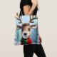 Cena de inverno com uma linda Reindeer vestindo um cachecol.