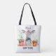 Esta bolsa de tote apresenta uma vaca adorável e engraçada que veste uma bandana vermelha atrás de uma fileira de plantas coloridas de cascas e frutas. O texto da cinza acima e abaixo da imagem diz "É uma Coisa da Vaca". Bonita! Ambos os lados do saco têm a mesma imagem e texto.