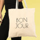 Bonjour French Tote Bag. Francês pensou em dizer "Olá" em francês. Excelente como presente. Estética para o dia a dia também. Apelo minimalista. ____ DETALHES DO PRODUTO: Disponível em 5 tamanhos diferentes! Dimensões: 15,75" L x 15,25" W. Material: 4,75 oz de 100% de algodão. Algodão com ponto de tensão reforçado. Escolha de 5 cores de alça. Impressão de ambos os lados para uma pequena carga adicional. Escolha de 5 cores de alça. Máquina lavável. — ORDENAMENTO FACILITADO: 1. Use o menu suspenso para selecionar o número de bolsas que deseja. 2. Adicione o item à sua cesta e faça check-out — INFORMAÇÕES IMPORTANTES: (envio GRATUITO com a Associação Zazzle Plus - consulte a página principal para obter detalhes)