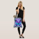 Uma borboleta vibrante com tons de azul e roxo é centrada dentro de um design circular ornamentado, cercada por intrincados padrões florais e joias decorativas. A composição total expele uma estética de vidro manchado com uma mistura harmoniosa de cores e simetria.
