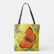 Uma bela foto de uma borboleta alada laranja que repousa sobre flores, é apresentada em ambos os lados desta bolsa de tote. Use para comprar, ir à praia, biblioteca ou para viagem. Feita nos EUA, faz um presente excelente para fãs de borboletas também!