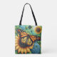Bolsa Tote Borboleta Monarch descansando em Sunflower