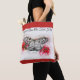 Uma foto bonito de uma borboleta preta e branca, entre flores rosa e vermelha, é mostrada nesta bolsa de tote de feriado. Você pode personalizá-lo com um nome ou texto de sua escolha, fazer este presente perfeito para Dia de os namorados, Dia de as mães, aniversários e muito mais! Excelente para comprar, viagem, trabalhar, escola e muito mais, resistente e lavável por máquinas também.