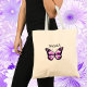 Saco de tota de borboleta roxa personalizada. Basta adicionar um nome na área de personalização.