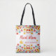 Carregue os seus produtos essenciais de jardim com estilo nesta vibrante bolsa de compras de flores silvestres. Apresenta uma bordadura simétrica e exuberante de flores pintadas multicoloridas e detalhes botânicos alegres num fundo branco nítido. Esta bolsa robusta é um excelente presente para um amante de plantas ou um acessório prático para viagens ao mercado local de agricultores.
