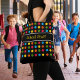 Carregar seu essencial em estilo com este saco de tote personalizado e personalizado, com um padrão vibrante de bolinhas vermelha, azul, verde, amarela e laranja sobre um fundo preto elegante. Tipografia do School Stuff de um lado e seu nome ou texto personalizado do outro. Este bolsa durável é perfeito para professores e estudantes, fornecendo amplo espaço para livros, suprimentos e muito mais. Personalize-o para um acessório único e prático.
