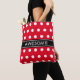 Bolinhas brancas elegantes em fundo vermelho Saco Tote. O texto pode ser personalizado.