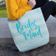Bolsa Tote Bridesmaid do Script de Pincel de Stripes Azul de