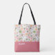 Abelhas... abelhinhas brancas. Abelhas de desenho animado voando com flores de bolhas em tons de rosa, laranja, verde e azul com folhas e caules dispersos. Personalize com seu nome ou mensagem em fonte de script branco cursivo definida em New York Pink.