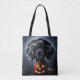 Um buquê assustador de rosas pretos em um pote de jack-o-lanterna.