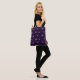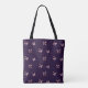 Esta bolsa de tote apresenta um padrão de borboletas de sino rosa que voam e se afundam em ambos os lados desta bolsa de compra. As belas borboletas são colocadas sobre um fundo roxo real que pode ser rápida e facilmente personalizado.