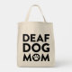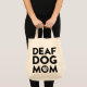 O texto preto "Mãe Cachorro Surda" está empilhado em três linhas de texto em maiúsculas. O "o" em "Mãe" tem um dentro de pata branca.
