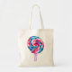 Uma ilustração original de um doce em um bastão, uma coloração gigante e colorida, do pirulito. Rosa, roxo e azul.