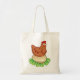 Uma galinha sentada sobre um ovo de ouro com dinheiro debaixo dele. Este design parece realmente eficaz nesta Tote Bag