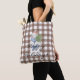 Tartan design marrom, personalizado, decorado com um ursinho polar giro e feliz saco de Natal.
