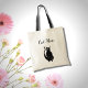 O desenho animado de gato preto é personalizado com um saco tote com um desenho desenhado à mão em gatinho e design de tipografia de script. Com as letras negras, você pode adicionar seu próprio texto. Um item acessório divertido para quando você estiver em movimento.