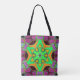 Bolsa Tote Cartoon Mandala Flor Verde Laranja e Roxo